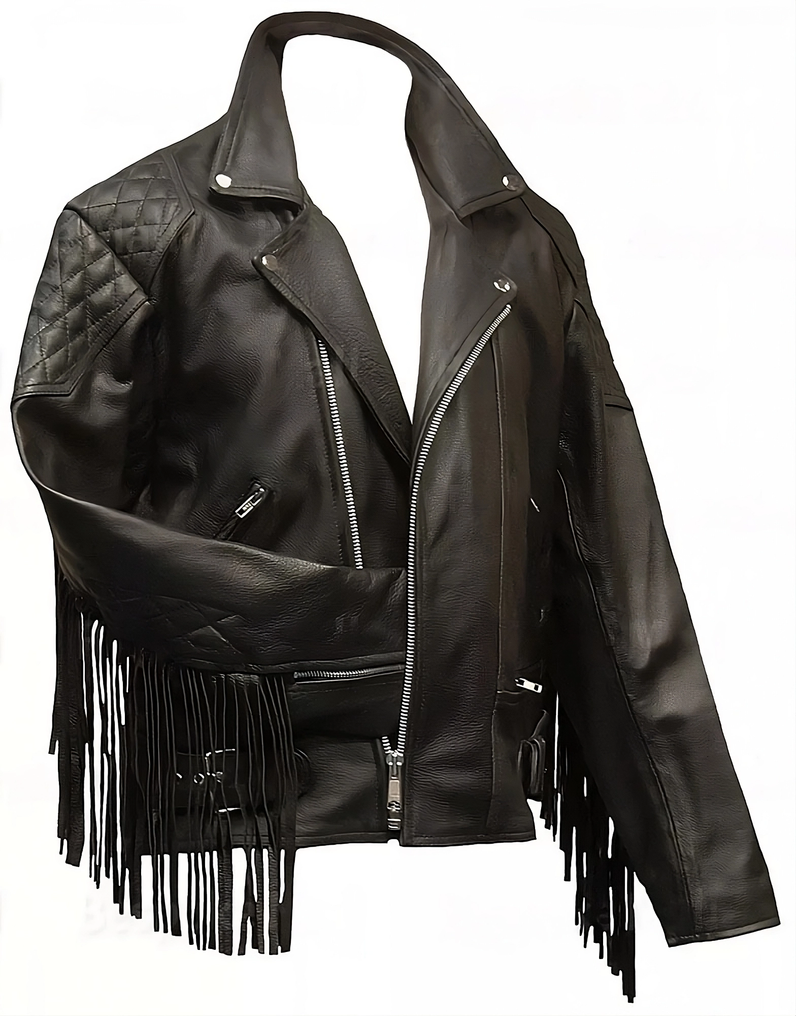 - 100 % Genuine Top Quality Leather jacket with adorable fringes.